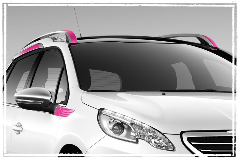 KIT ADESIVI PEUGEOT 2008. SERIE DI 8 ADESIVI LATERALI ZONA SUPERIORE Serie di 8 adesivi laterali zona superiore per personalizzazione "Downtown flash pink". Zone interessate: Agganci dei retrovisori x2. Agganci anteriori e posteriori barre del tetto x4. Protezione parte alta porte posteriori x2. Colore: Rosa.